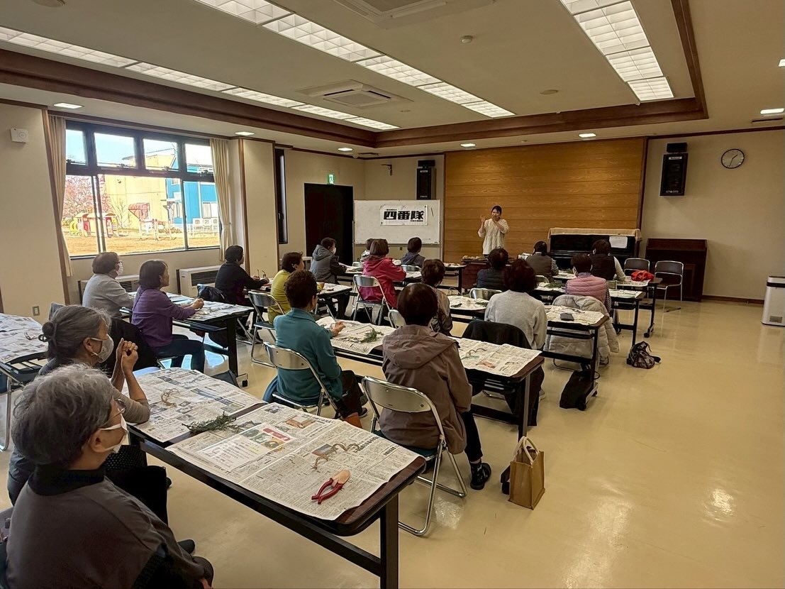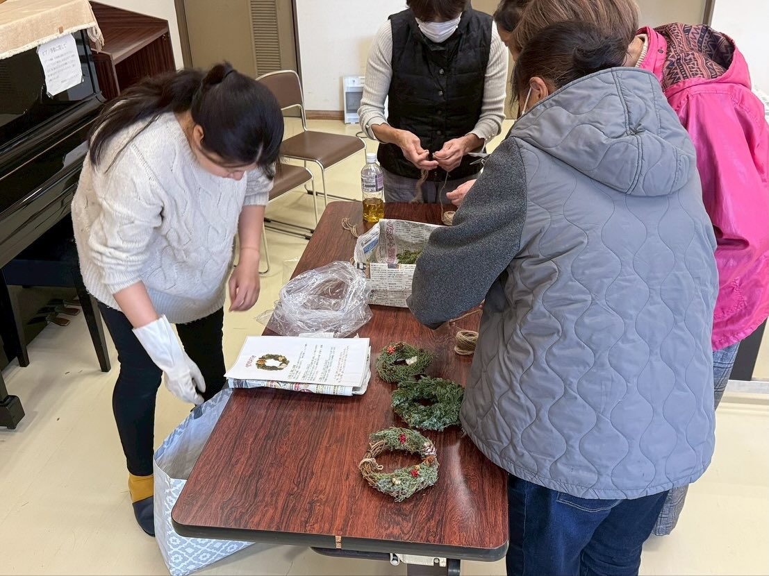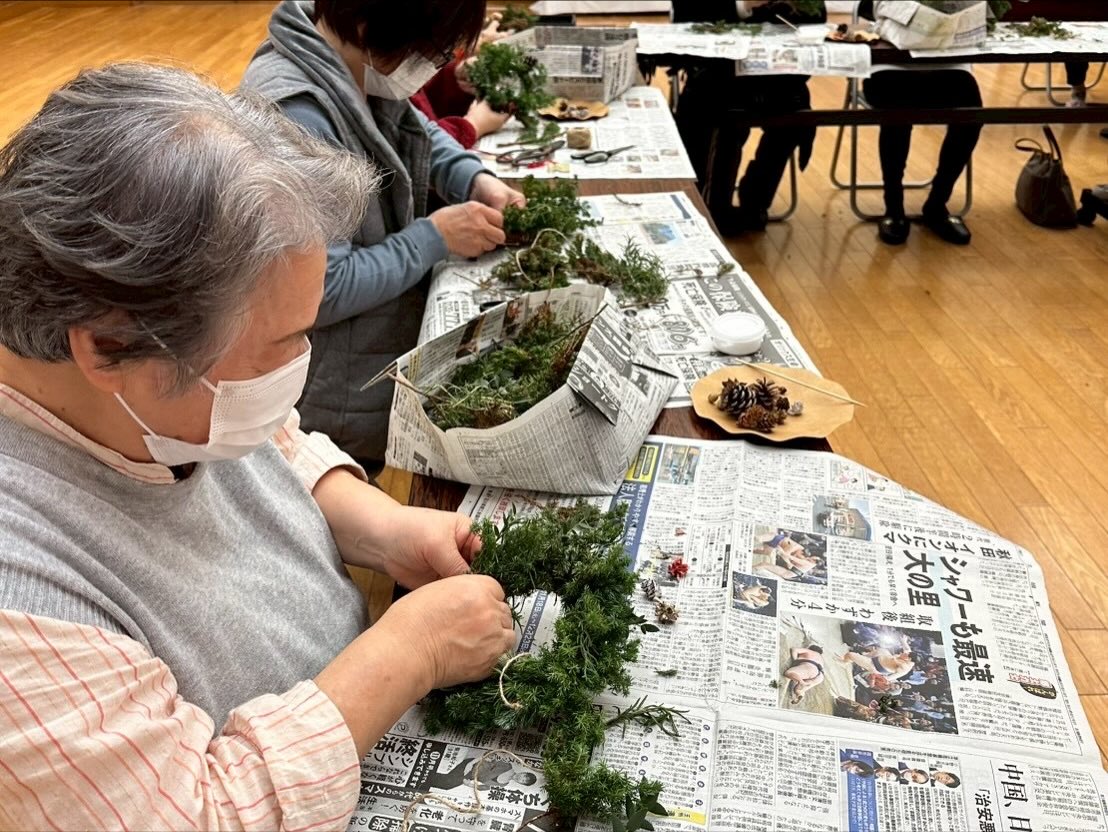 初めての方が多い中でも、それぞれが楽しみながらリース作りに取り組み